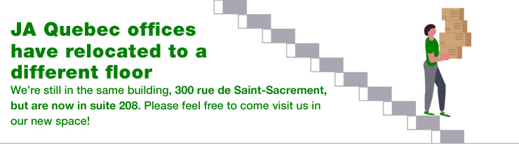JA Quebec staffing will be reduced for summer. If you're thinking of coming to our offices, please check with the person you're coming to see to make sure they'll be there! Please also note that our offices will be closed from August 5–9, 2019.